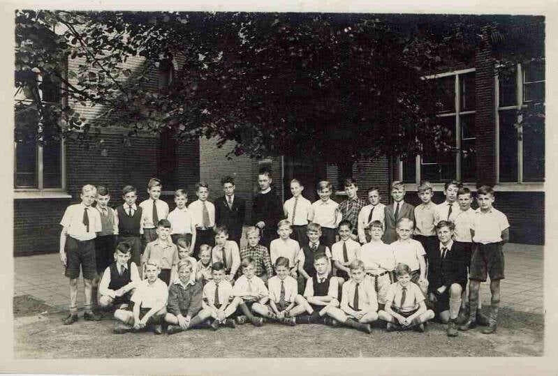 Tweede van links bovenste rij is Bernard Aleven en negende zowel van links als van rechts naast de frater is Honoré Boddeke (geb. 29 mei 1932)